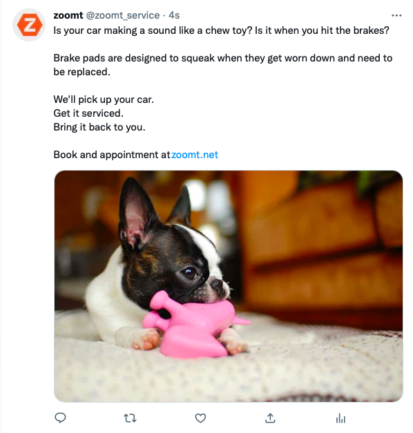 Zoomt is a valet service for getting your car serviced. They’re a startup so they’re building awareness through social media.
